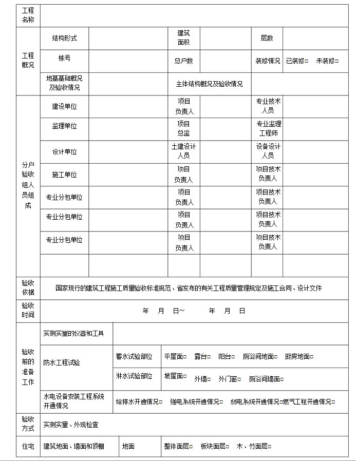 住宅工程質(zhì)量分戶驗收方案的填寫說明